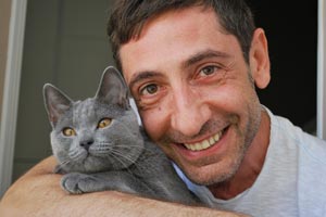 Mi chiamo Claudio Trovato e sono stato sempre attratto dal meraviglioso e misterioso mondo felino ma non avevo mai avuto modo di rapportarmi ad esso. Da tempo, quindi, desideravo un gatto, ma non uno qualsiasi… volevo un “Certosino”. La sua raffinata bellezza, il suo sguardo accattivante, hanno catturato il mio interesse permettendomi di entrare in un mondo quasi sconosciuto. Una sorta di attrazione fatale. Così per un mio compleanno è arrivato il mio primo gatto blu: Pancrazio. L’espressione del suo viso, un pò seria e un pò sorridente, quegli occhi dolci e vispi di un colore che ammalia, mi hanno fatto innamorare. Un’esperienza da lì a poco, condivisa con un mondo di cui ignoravo l’esistenza. Una sorta di partenza fino ad arrivare, per quanto si possa, ad esplorare e imparare sempre cose nuove ed affascinanti. Posso affermare che a tutt’oggi condividere la vita con queste adorabili creature è una bellissima esperienza alla quale non potrei e non vorrei più rinunciare. Nel 2012, il mio allevamento di gatti Certosini è stato riconosciuto dall’ANFI-FIFe con l’affisso “DEGLI UFFIZI” e partecipato al Master Allevatore Felino.