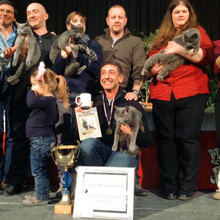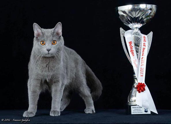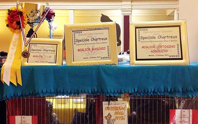 Alla Speciale Certosini del 19 Gennaio 2013 a Bologna, Tyrone ArdoisetAmbre si è qualificato Miglior Certosino Cucciolo classe 6-10 mesi e “Best Chartreux 2013”.
